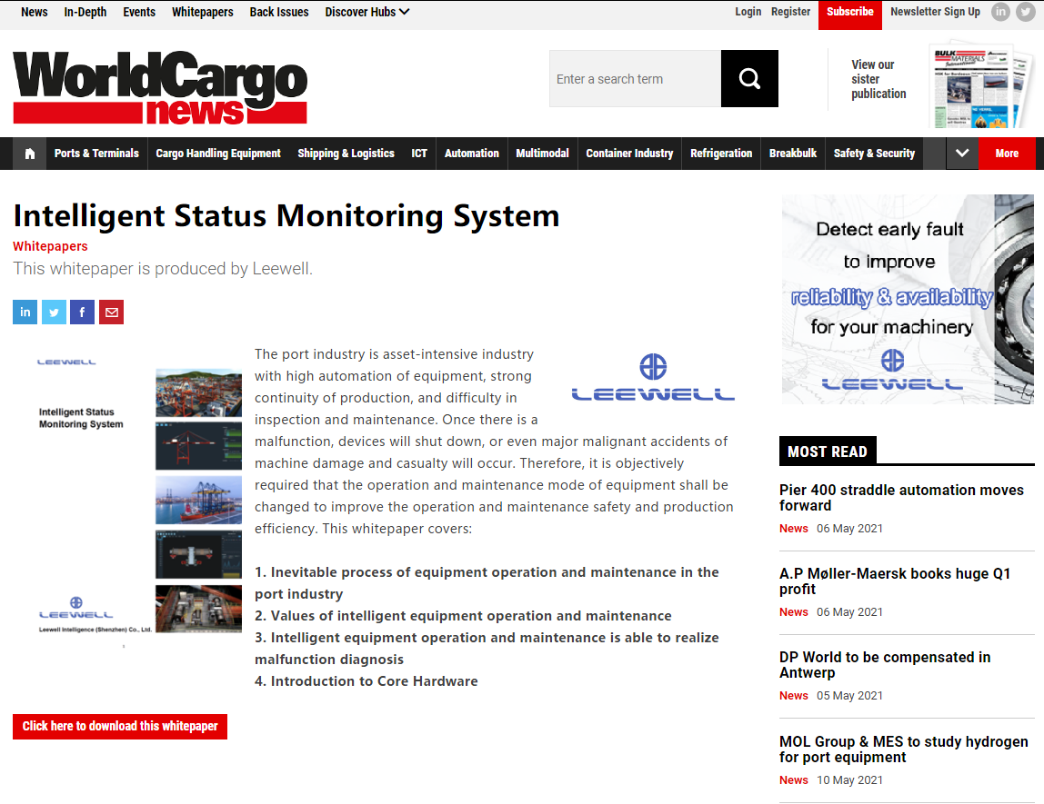 Currently, you can find Leewell by visiting the World Cargo News homepage or subscribing to the daily newsletter. In the WhitePapers column, you can also download the technical white paper of our intelligent status monitoring solution. Welcome to browse: